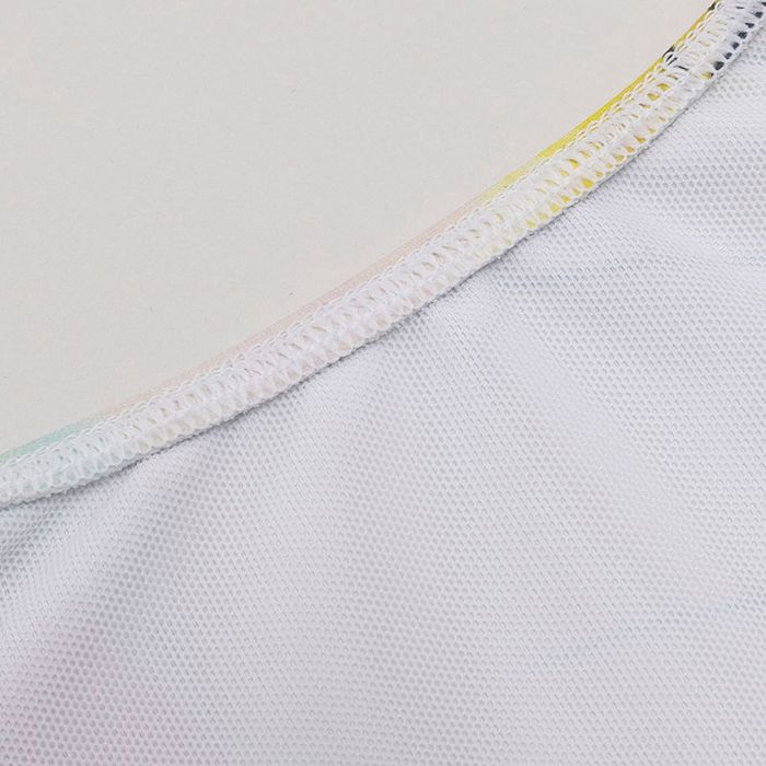 Tip: Om optimaal gebruik te maken van het personaliseren van zwemkleding, adviseren we om een print met kleuren, afbeeldingen of fotocollages te kiezen en een ontwerp te creëren met minimale witruimten. Florence net is de perfecte voeringstof voor badkleding. Vanwege de helderwitte kleur van deze stof, kunnen lichte ontwerpen mogelijk wat doorschijnen wanneer het badpak nat wordt.