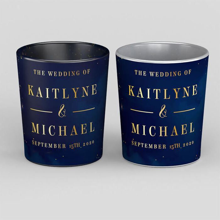Wil je een uniek huwelijkscadeau creëren? Ontwerp dan een set gepersonaliseerde kaarsenhouders voor Hem & Haar. Selecteer een klassiek lettertype en laat de waxinelichthouders bedrukken met de gezamenlijke achternaam en 'Mr & Mrs'. Dit zijn prachtige decoratie-items voor een romantisch diner en een mooi aandenken aan de grote dag.