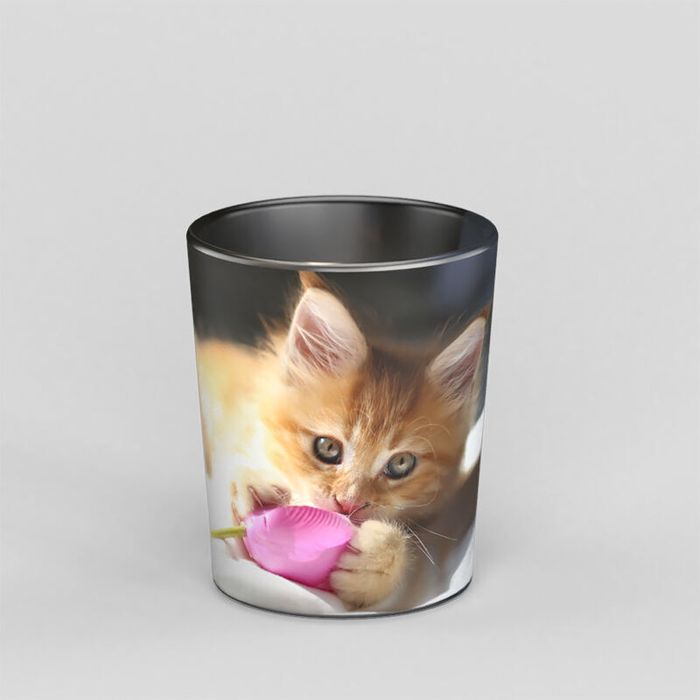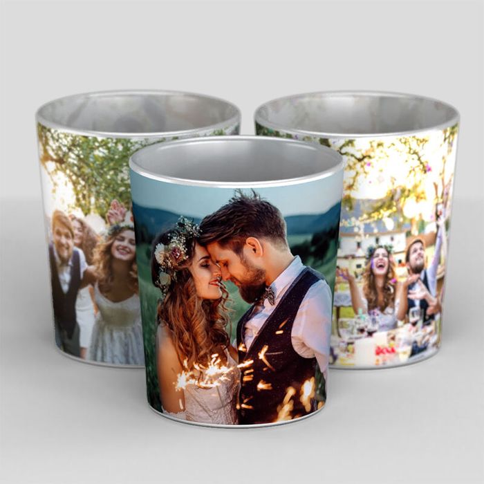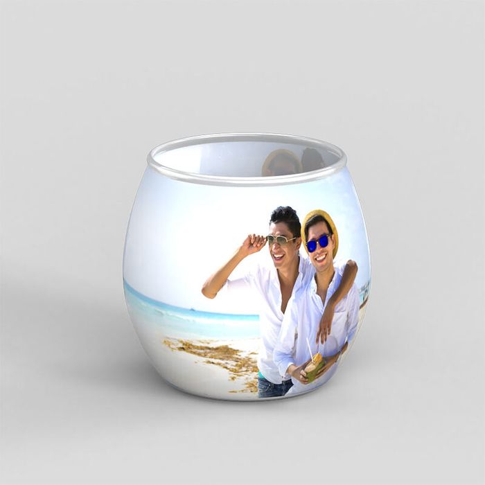 Het ontwerp wordt rondom de kaarsenhouder gewikkeld. De verschillende modellen en materialen geven de foto's unieke kenmerken. Bij de kegelvormige glazen houders is er geen opening zichtbaar. Als je kiest voor de ronde, bolvormige, kaarsenhouders dan is er een lichte naad zichtbaar waar de afbeelding samenkomt. Zorg ervoor dat het belangrijkste deel van je afbeelding zich in het midden van het ontwerp bevindt. Vanwege de bolvorm kan de afbeelding aan de zijkant namelijk wat worden uitgerekt.