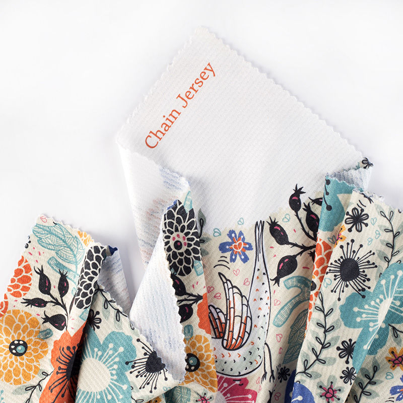 We gebruiken een specialistisch drukproces dat de inkt diep in de Jersey stof drukt, voor een permanente print die niet vervaagt. De stof wordt op maat gesneden en geknipt, omgezoomd met witte of zwarte draad of gewoon verzonden. De afdrukkwaliteit op onze jerseys is helder en scherp. Sommige van onze jerseys hebben een textuur, zoals de bobbel jersey, of een extra voering, zoals de gequilte jersey. Bekijk onze collectie om de juiste stof voor jouw project te vinden.