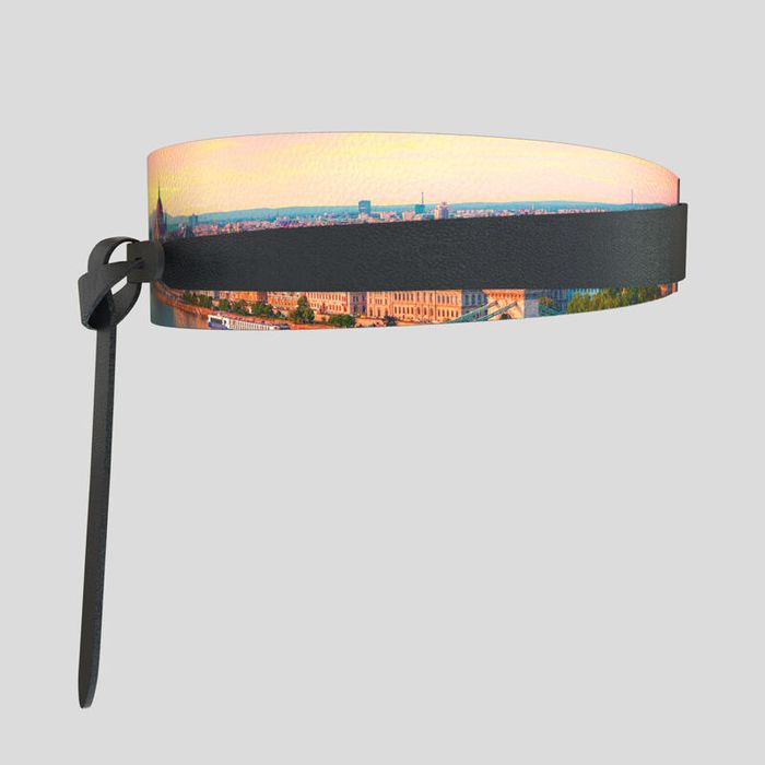 Een uniek accessoire vraagt om een uniek ontwerp. Omdat de banden van je bedrukte wikkelriem zich uiteindelijk voor je ontwerp bevinden, raden we aan om geen foto's te gebruiken met belangrijke details, zoals gezichten. Ze kunnen namelijk eenvoudig wegvallen door de knoop die zich aan de voorkant van de riem bevindt. Panoramische foto's, patronen of kleurrijke designs zullen er prachtig uitzien op deze gepersonaliseerde tailleriem. Denk bijvoorbeeld aan je favoriete vakantiefoto of een afbeelding van een mooi landschap.