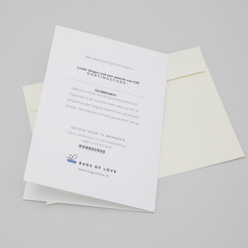 Wie houdt er niet van deze prachtige cadeaubonnen? Ze zijn het ideale geschenk, omdat de ontvanger hiermee zelf het perfecte cadeau kan uitzoeken. Geef die kieskeurige vriend of vriendin een unieke cadeaukaart van Bags of Love en hij/zij zal versteld staan van de keuze die deze bon hem/haar geeft. Heb jij een zus die alles al heeft? Dan kun je zelfs haar verrassen met een voucher waarmee ze gepersonaliseerde fotocadeaus kan uitzoeken. De cadeaubonnen zijn niet alleen perfecte cadeaus voor de ontvanger, ze maken het jou ook een stuk makkelijker! Als jij het zo druk hebt, dat je niet eindeloos online of in de stad kunt zoeken naar het perfecte geschenk, dan zijn onze gepersonaliseerde vouchers de oplossing. Is vandaag de verjaardag van jouw moeder? En ben je deze vergeten? Maak je geen zorgen, wij lossen het voor je op. Wanneer jij online een cadeaubon bestelt, zullen wij deze direct per e-mail naar jou versturen. Zo blijf je nog steeds het favoriete kind!