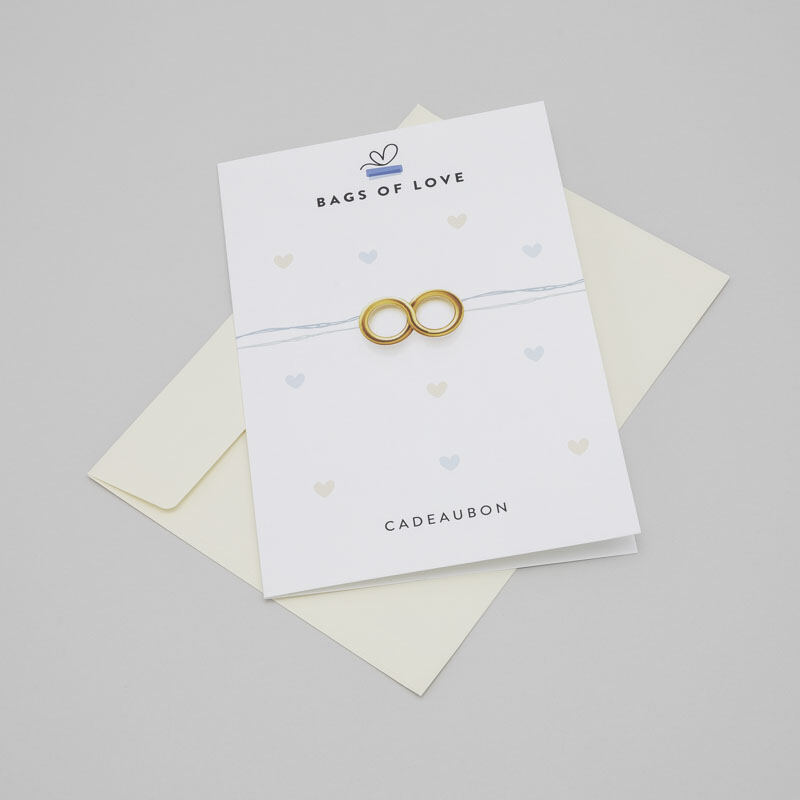 Omdat elke gebeurtenis speciaal is, hebben we een aantal verschillende thema's gecreëerd voor jouw gepersonaliseerde cadeaubonnen. Kies een van de 5 ontwerpen die het beste aansluit bij de gelegenheid waarvoor het cadeau bestemd is. Alle 5 cadeaukaarten zijn bedrukt met het Bags of Love logo en het woord "Cadeaubon", zodat er geen verwarring kan ontstaan. Het thema "Klassiek" bestaat uit een afbeelding van een prachtige handtas op een achtergrond van stippen. Dit ontwerp is perfect voor verjaardagen of "zomaar" cadeautjes. Als je binnenkort naar een huwelijksfeest gaat, kies dan voor het "Bruiloft" thema. Dit stijlvolle design bevat twee gouden trouwringen op een achtergrond van gekleurde hartjes. Voor een speciale verjaardag is het "Verjaardag" thema geschikt. Deze voucher toont een leuke verjaardagstaart en feesthoedje. Ouders van pasgeboren baby's zullen weg zijn van een cadeaubon met een speciaal "Baby" thema. Tenslotte hebben we ook nog cadeaubonnen met het thema "Kerst", dat perfect geschikt is voor kerstcadeautjes. Op de voorkant van deze voucher staan een kerstcadeautje en kerstsokken afgebeeld.