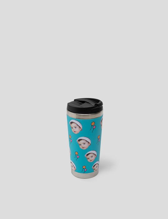 Jouw gezicht op een reisbeker wordt je nieuwe beste vriend.