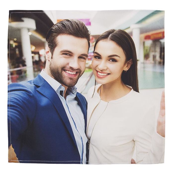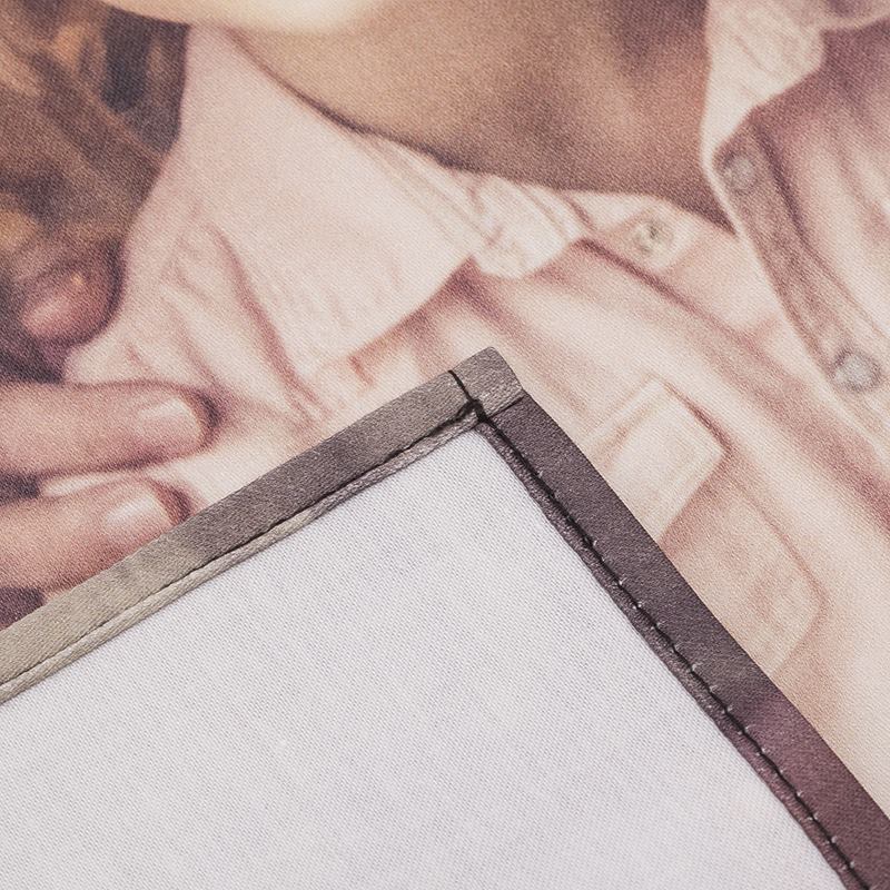NB: De achterkant van het product blijft wit, hoewel er enige doordruk van de print zichtbaar kan zijn.Je ontwerp wordt afgedrukt op de stof met behulp van een infusiemethode. Deze druktechniek levert een duurzame print op die er niet afslijt. Het pochet wordt vervolgens op maat geknipt en door deskundige coupeuses voorzien van een zoom.