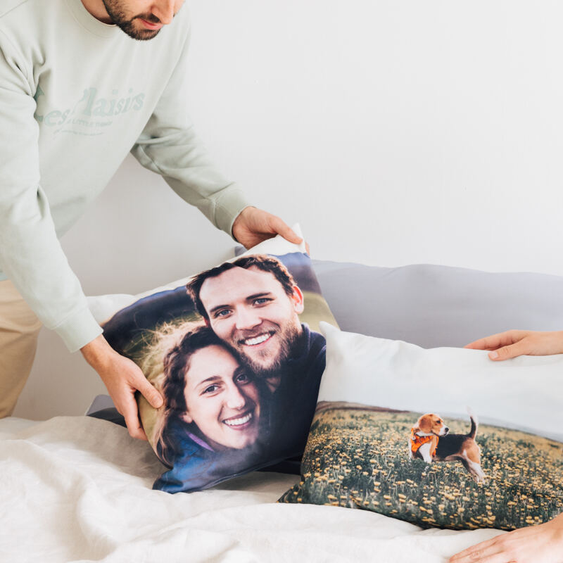 Leun achterover en relax met deze gepersonaliseerde fotokussens op de bank of in bed.