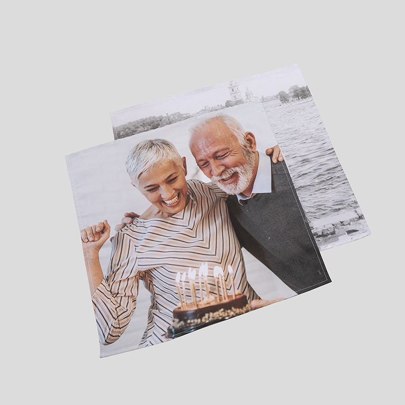 We drukken je foto's, ontwerp of tekst op de stof van jouw keuze, waarna de stof met de hand wordt gestikt. Je gepersonaliseerde servetten worden met zorg en aandacht handgemaakt op bestelling.