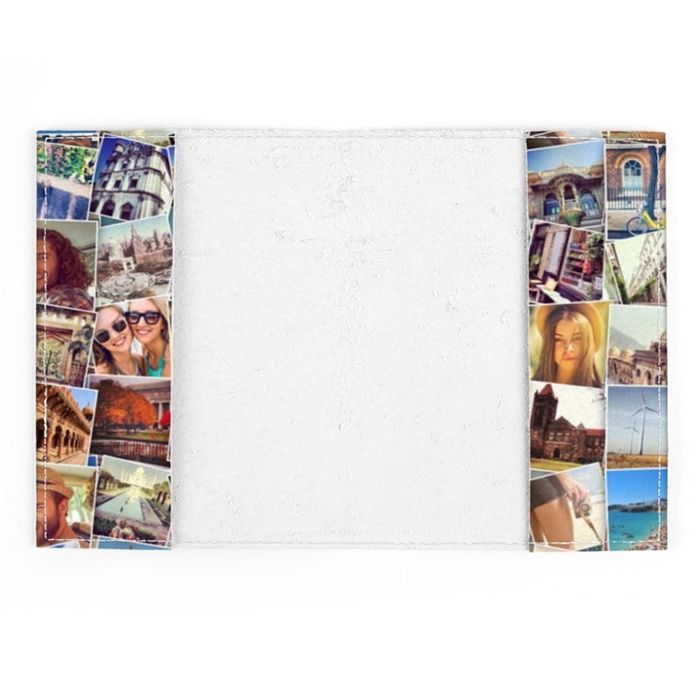 Er zijn vier delen die jij kunt personaliseren - de voorkant, achterkant en de twee binnenzijden waar je het paspoort instopt. Portretformaat foto's werken het beste op de gepersonaliseerde hoezen. Wil je echter een landschapsformaat foto gebruiken, kies dan voor een van onze 'effecten' om te zorgen dat het ontwerp de gehele hoes beslaat. Ontwerp een collage van al je favoriete reisfoto's en ontwerp een praktisch item en nostalgisch aandenken in één. Upload meerdere afbeeldingen en kies een van onze vooraf-ingestelde lay-outs of ontwerp je eigen collage.