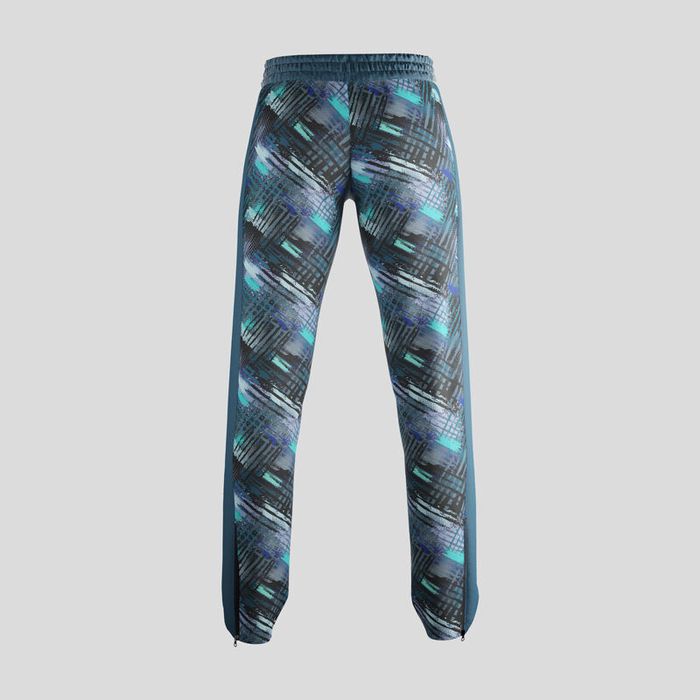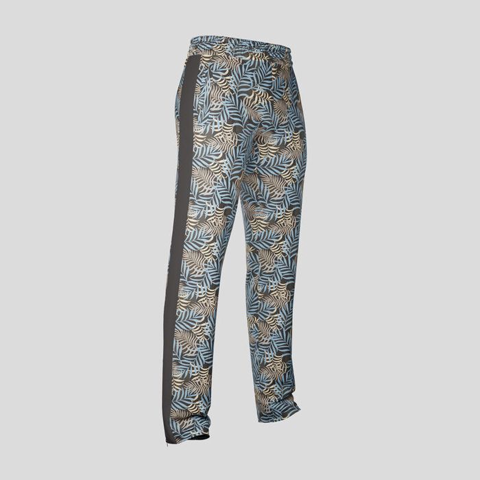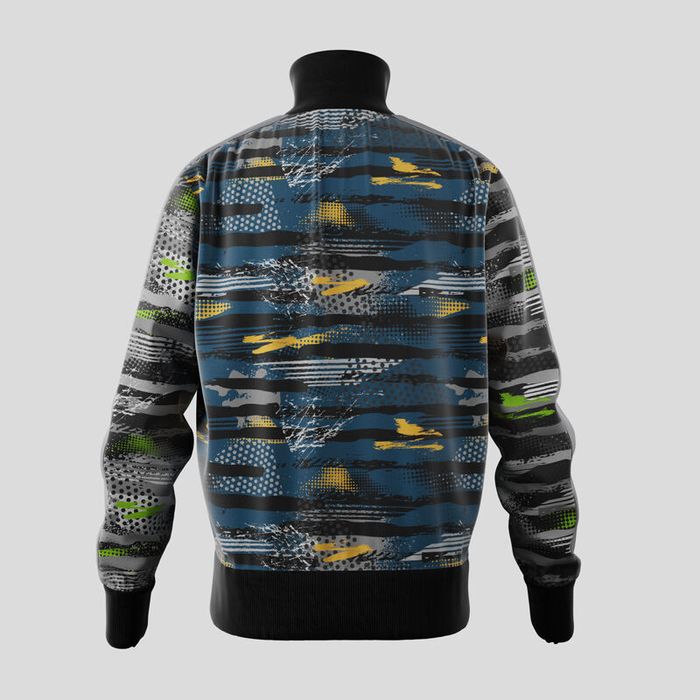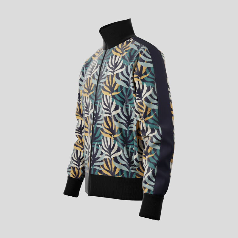 Het pak bestaat uit verschillende ontwerpvlakken: voor- en achterkant van jack en broek, de mouwen en zelfs de tailleband. Gebruik hoge-resolutie afbeeldingen voor het beste resultaat. Ontwerpers die een eigen ontwerp trainingspak willen maken, kunnen patronen over vlakken laten doorlopen, maar houd rekening met kleine verschuivingen door het handmatige stikwerk. Kies voor zwarte of witte ritsen en garen om kleuren in je design terug te laten komen. Met een streep in een contrasterende kleur verbind je jack en broek tot één geheel.