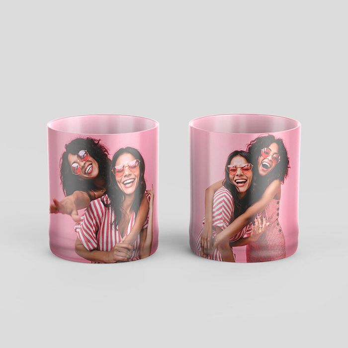 Jouw ontwerp wordt rondom de gepersonaliseerde whiskyglazen gedrukt, waardoor er aan één kant van het glas een lijn zichtbaar is. NB: De twee uiteinden van je ontwerp zullen niet perfect op elkaar aansluiten.