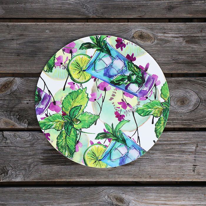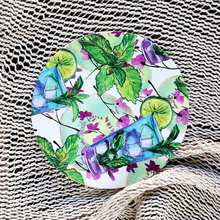 Serveer kaas, brood, sushi of kerstkoekjes op een gepersonaliseerde serveerschaal met foto of serveerschaal met eigen tekst. De ronde schaal wordt op bestelling met de hand bedrukt in full colour, zodat elke print haarscherp en langdurig mooi blijft.