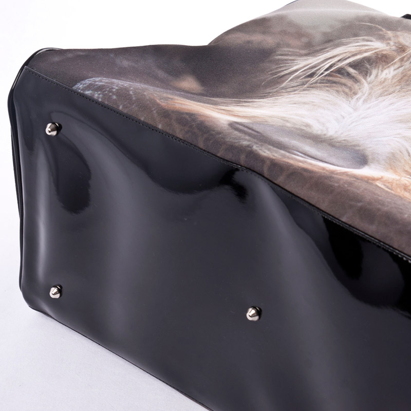 Jouw sporttas is een geweldig geschenk voor elke sportfanaat. We drukken je foto's op 300 g/m² canvas met behulp van specialistische drukprocessen, waarbij de inkten tot diep in de vezels van de stof doordringen. Dit levert een prachtige, duurzame print op die er niet afslijt. Het bedrukte canvas wordt vastgemaakt aan zacht nappaleer of canvas en de tas wordt met de grootste precisie door onze deskundige naaisters in elkaar gezet. Ter bescherming wordt de onderkant voorzien van zilverkleurige metalen studs, zodat je de tas zonder problemen op de grond kunt plaatsen. De ronde leren hengsels worden aan elke kant van de sporttas vastgemaakt en bieden je extra draagcomfort.