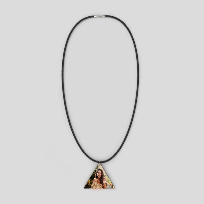 Houten sieraden zijn tegenwoordig helemaal in; we denken dat dit niet snel zal veranderen. Het originele, klassieke sieraad kan een eenvoudige outfit direct naar een hoger niveau tillen. De bedrukte houten ketting wordt gemaakt van kwaliteitshout, dat afgewerkt wordt met een matte textuur die je print in optimale staat houdt. Selecteer een foto naar keuze en draag vol trots een wel heel persoonlijk item. Bij het ontwerpen van je houten halsketting, is het belangrijk om rekening te houden met de vorm, maat en kleuren. Bij de wat complexere vormen, zoals de cirkel met uitsparing en de driehoek, raden we aan de afloopgebieden goed in acht te nemen bij het positioneren van je afbeeldingen. Zo zorg je dat de belangrijkste delen van je foto of ontwerp niet wegvallen. We adviseren dan ook je foto's zo centraal mogelijk in het ontwerpvlak te plaatsen.