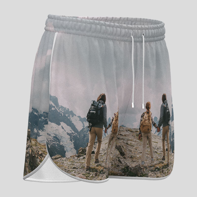 De gepersonaliseerde korte sportbroek voor dames bestaat uit vijf ontwerpvlakken. Zo kun je de voorkant en achterkant van elke pijp én de tailleband laten bedrukken met foto's, teksten en kleuren naar keuze. De afwerking, draad en het koord zijn verkrijgbaar in een witte of zwarte kleur. Om de personalisatie naar een nog hoger niveau te tillen kun je zelfs je eigen label ontwerpen, dat aan de binnenkant van de bedrukte sportshort wordt bevestigd.