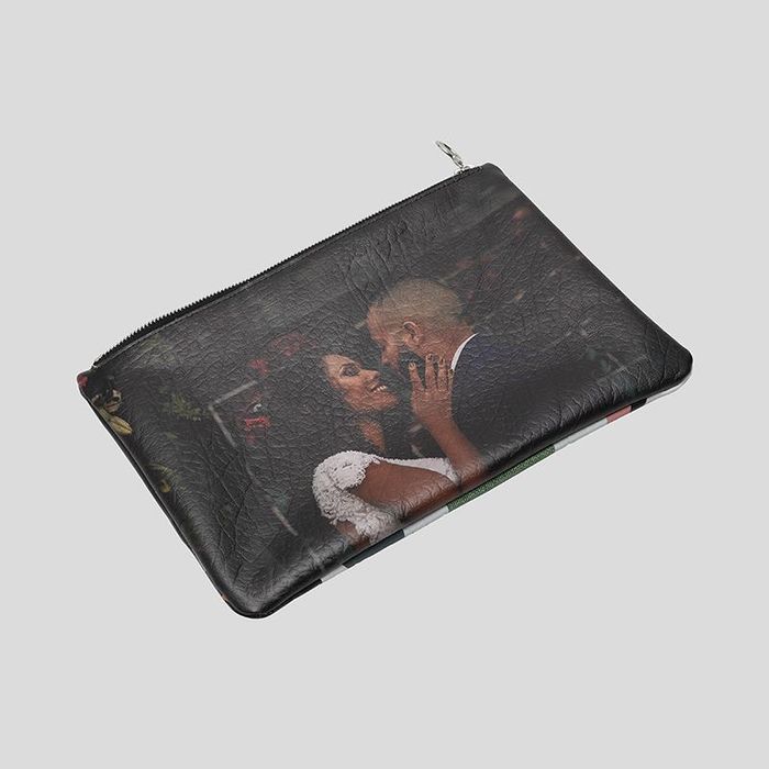 Ons online ontwerpprogramma heeft verschillende handige functies die je helpen bij het ontwerpen van je gepersonaliseerde clutch. Je kunt een enkele foto uploaden, of meerdere afbeeldingen gebruiken om een collage te creëren. Met onze herhaalfunctie kun je zelfs een patroon creëren door bijvoorbeeld een uitsnede van je gezicht of een leuk logo te gebruiken, dat vervolgens verspreid over de hele tas wordt afgedrukt.
