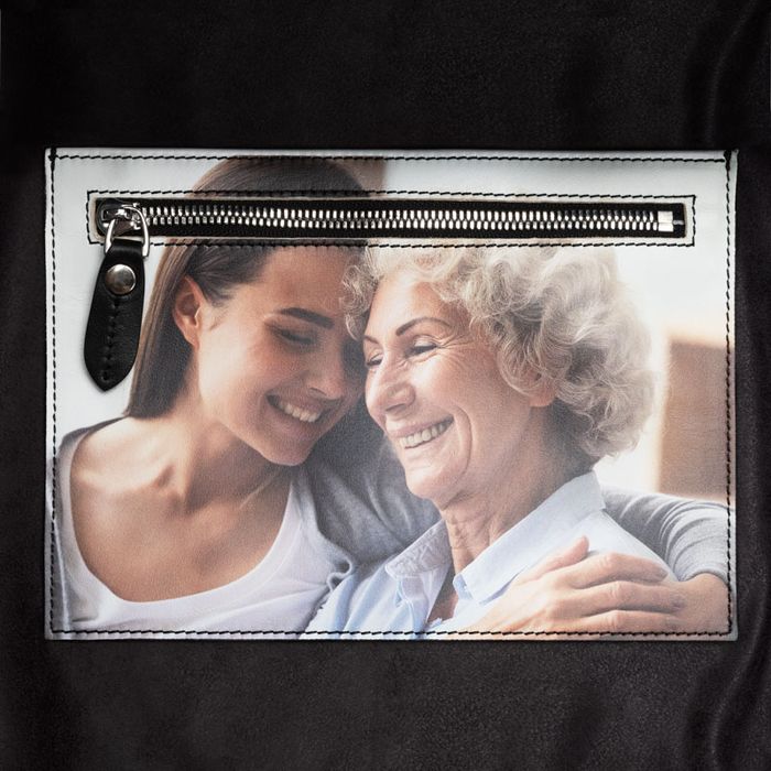 Elke gepersonaliseerde leren tote bag wordt handgemaakt in onze werkplaats. Deskundige printtechnici drukken je ontwerp op het materiaal, met behulp van een moderne digitale printmethode. Deze techniek is speciaal ontwikkeld voor het bedrukken van leer en levert een duurzame print op die langdurig mooi blijft. Je foto's en herinneringen zijn dus net zo sterk als het leer zelf. De bedrukte tote bags worden gemaakt van prachtig nappaleer. Zoals bij alle hoogwaardige leren producten, kan de print beschadigen wanneer het leer slijt. Wanneer dit het geval is, is het vooral zichtbaar in de hoeken en aan de onderkant van de tas. We adviseren dan ook om extra zorgvuldig om te gaan met jouw nieuwe tote bag. De basis van de tas wordt afgewerkt met een mooie, zwarte bies. Na het bedrukken van het leer, knippen onze vakmensen de stof op maat, waarna deskundige naaisters de draagtassen voor jou in elkaar zetten.