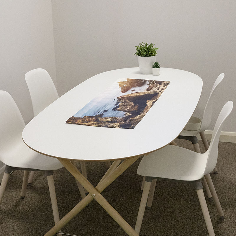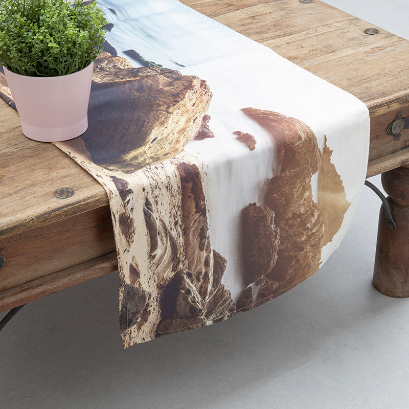 Alle gepersonaliseerde tafellopers worden met zorg en aandacht gemaakt door onze ervaren professionals. Je foto's worden op de stof van jouw keuze gedrukt met behulp van een specialistisch digitaal printproces, dat garandeert dat het ontwerp er niet afslijt. Het materiaal wordt vervolgens op maat geknipt en omgezoomd door onze naaisters.