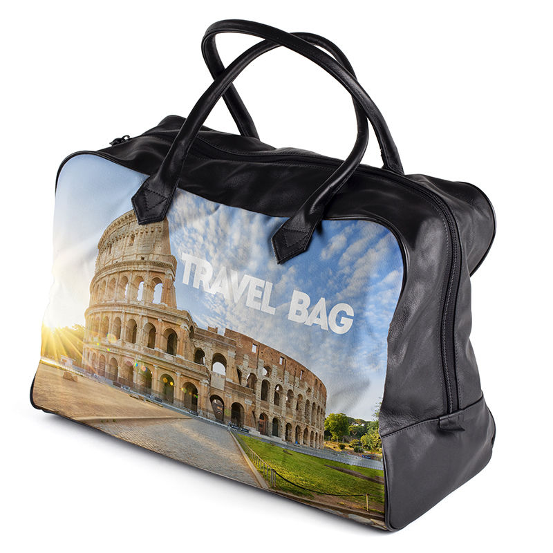 Deze uniseks leren en canvas tassen zijn de perfecte items voor een overnachting of weekendje weg. De kleinere maat komt overeen met een ruime handtas, perfect voor de noodzakelijkheden. Het grotere model is ruim genoeg voor alles wat je nodig hebt voor een stedentripje. Kies een ontwerp dat toont waar je de tas voor wil gebruiken. Is de reistas bestemd voor jou en je partner? Creëer dan twee stuks handbagage met foto's van jullie bruiloft. Wil jij een reisgekke vriend of vriendin graag verrassen? Ontwerp dan een weekendtas, bedrukt met foto's van jou en je familie. Zo zou hij/zij op reis altijd aan je blijven denken.