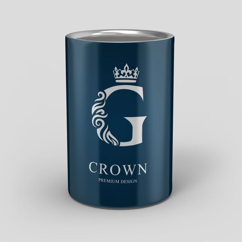 Wanneer je online een wijnkoeler creëert, kun je een groot ontwerpvlak vullen, dat de volledige buitenkant van de koeler beslaat. De randen van het ontwerp komen precies samen, waardoor een nette rechte lijn zichtbaar is. Omdat er bij de sublimatie printtechniek geen helderwitte inkten worden afgedrukt, krijgen de witte delen van je ontwerp uiteindelijk een zilverachtige kleur. Dit geeft je bedrukte wijnkoeler een mooi, modern effect.