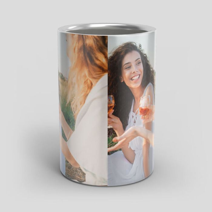 Ontwerp een gepersonaliseerde wijnkoeler voor je moeder en creëer een fotocollage met grappige afbeeldingen van haar en haar vriendinnen. Met dit unieke item steelt ze zeker de show op zomerse feestjes en zorgt ze tevens dat iedereen kan genieten van een gekoeld glas wijn. Upload eenvoudig meerdere foto's, selecteer de afbeeldingen die je wil gebruiken en creëer een collage met behulp van onze handige interface. Je kunt een van onze vooraf ingestelde templates gebruiken of zelf een collage ontwerpen.
