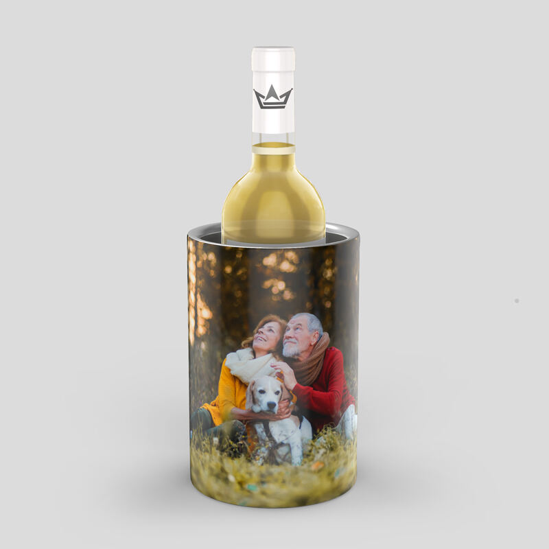 Met behulp van onze handige designinterface kun je eenvoudig jouw eigen gepersonaliseerde wijnkoeler ontwerpen. Wanneer je tevreden bent, gaan wij voor je aan de slag. We bedrukken de wijnkoelers met behulp van een dye-sublimatietechniek. Onze printers maken gebruik van milieuvriendelijke inkten en hoge temperaturen om je foto's aan het roestvrijstalen materiaal te hechten. Dit levert een duurzame print op met levendige kleuren en geweldige details. Het volledige proces wordt uitgevoerd in eigen huis, door onze vakkundige printtechnici. Zo ben jij gegarandeerd van een originele wijnkoeler van de hoogste kwaliteit.