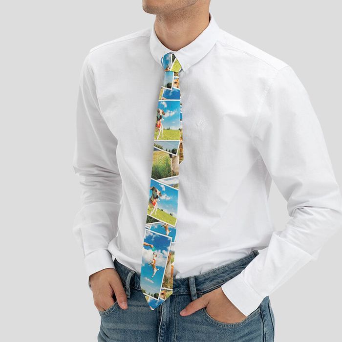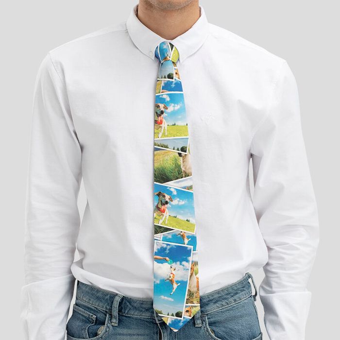 Laat een stropdas van echte zijde bedrukken met foto´s, zodat jouw man je altijd dichtbij draagt. Kies voor waardevolle momenten die jullie samen hebben gedeeld, zodat hij zelfs tijdens zakelijke evenementen even herinnert wordt aan jullie mooie momenten samen. Een stropdas is het perfecte vaderdagcadeau, dat kinderen zelf kunnen ontwerpen. Zo kunnen ze zelfs een zijden stropdas met een print van hun eigen tekeningen creëren. Leg hun mooiste kunstwerken vast, upload ze naar onze gebruiksvriendelijke designinterface en ontwerp een gepersonaliseerde zijden stropdas.
