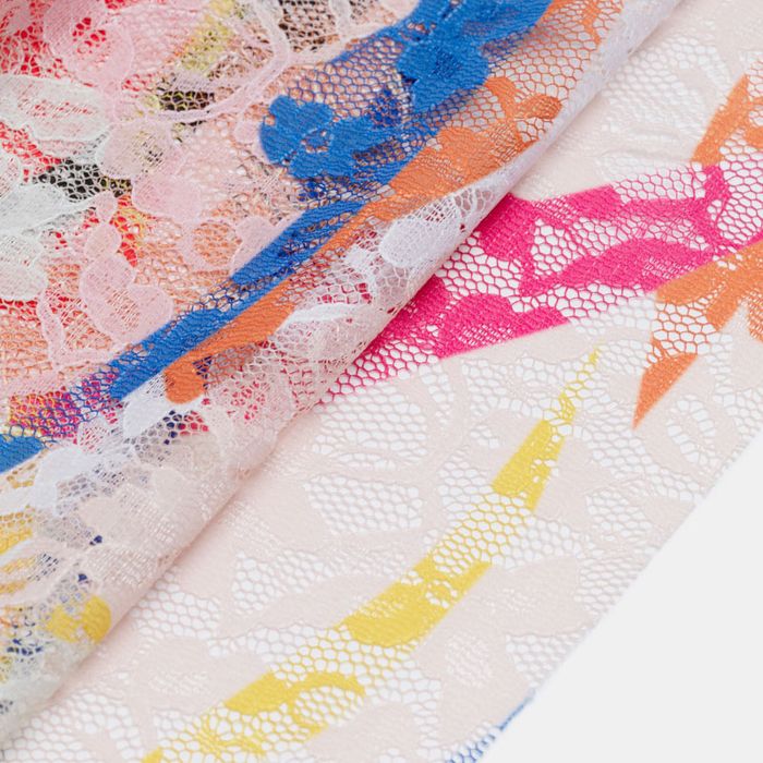 Laat kant bedrukken en geniet, dankzij ons unieke en professionele printproces, van een duurzame, levendige print. De kleuren van de print komen prachtig over en blijven er lang mooi uitzien op de Bloesem Kant. We adviseren om geen ontwerpen te kiezen met veel fijne details, omdat deze door de open weefstructuur niet altijd zichtbaar zullen zijn. Felle kleuren doen het juist heel goed en zullen ook op de achterkant zichtbaar zijn.