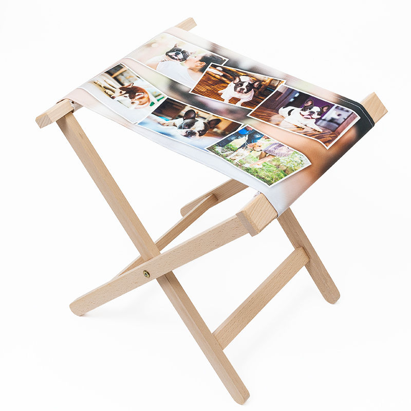 Elke opvouwbare kruk wordt pas gemaakt zodra jij jouw ontwerp hebt geüpload. Ons team zaagt het FSC-hout op maat, bevestigt het stevige canvas en personaliseert het oppervlak met jouw creatie. Zo kun je eenvoudig een opvouwbare kruk met logo, naam of vrolijke foto personaliseren voor elke gelegenheid.