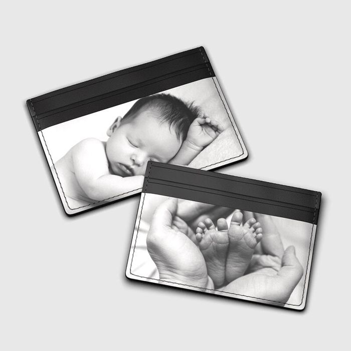 Wil jij een pashouder met symmetrisch design creëren, upload jouw afbeelding dan naar één kant van de houder en klik op "Kopiëren". Dit zorgt ervoor dat dezelfde afbeelding op de andere kant op precies dezelfde wijze wordt weergegeven. Ga nu naar Effecten en klik op "Spiegelen". Sleep de gespiegelde foto vervolgens naar de juiste plek. De pasjeshouders hebben een middenvak en twee sleuven aan beide kanten, waar jij je pasjes in kunt steken. Dit gedeelte is zwart en bevindt zich bovenaan de leren pashouders, precies boven de print. Houd bij het creëren van je ontwerp rekening met deze ruimte en zorg dat belangrijke details, zoals gezichten, zich niet te dicht bij de rand bevinden.