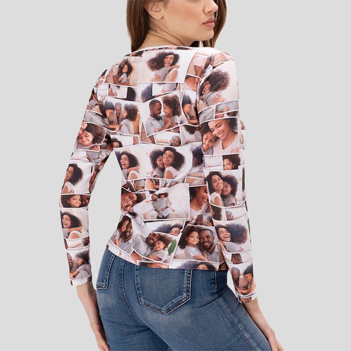 Ben jij op zoek naar een speciaal cadeau, ontwerp dan een dames-T-shirt, bedrukt met familiefoto's. Dit is bijvoorbeeld een prachtig fotogeschenk voor Moederdag.