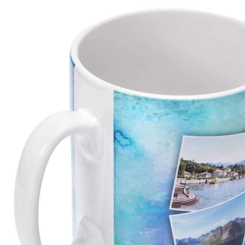 Onze stevige keramieken mokken zijn helderwit, waardoor jouw print extra sprankelt. Upload je ontwerp en wij laten de mok bedrukken met een 360° sublimatieprint. De afbeelding loopt rondom de hele mok, zodat elke slok jouw creatie in beeld brengt. Of je nu gaat voor een mok met foto, collage of grappige quote, de kleuren blijven lang mooi.