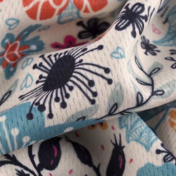 Hoewel het zelden voorkomt, kunnen de kleuren van verschillende oplagen van dezelfde prints licht verschillen. Het is onwaarschijnlijk dat dit verschil duidelijk zichtbaar zal zijn (zo zal het oranje deel van een print niet ineens een rode kleur hebben). De variaties verschillen per stofsoort, vanwege de verscheidene texturen en samenstellingen. Natuurlijke stoffen leveren wat zachtere kleurtinten op, terwijl prints op polyester juist wat levendiger overkomen. We werken echter constant aan het verbeteren van onze kleurprofielen.