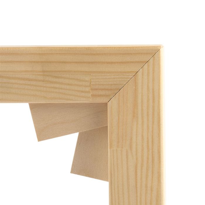 Het frame wordt vervolgens handgemaakt van FSC-gecertificeerd hout, evenals de spielatten en wiggen. Wanneer de onderdelen klaar zijn, spannen we handmatig het canvas op het frame, zodat we keer op keer het beste resultaten bereiken.