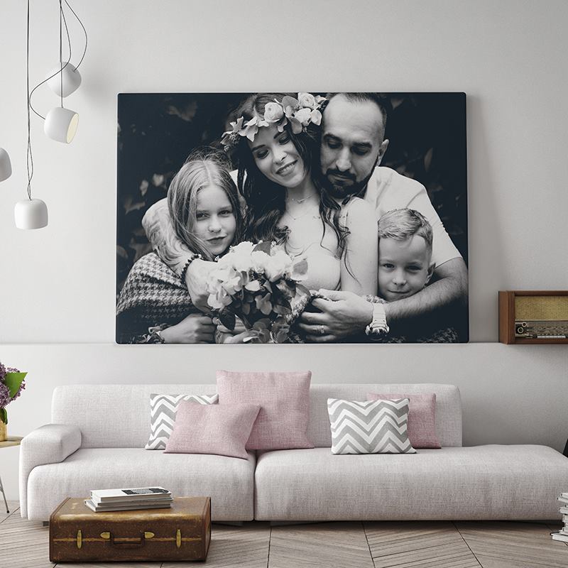 Laat jouw trouwfoto's tot leven komen op maatwerk canvas. Je kunt zelfs een zwart-wit of sepia filter toevoegen om jouw foto een gave vintage uitstraling te geven.