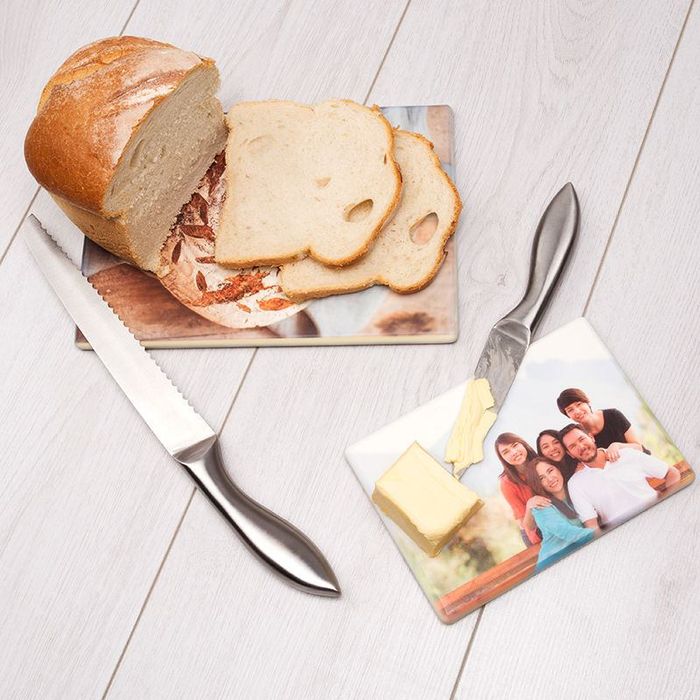 Deze aangepaste snijplanken zijn geweldige foto cadeaus, ze zijn perfect voor bruiloften, jubilea of house warming cadeaus. Onze Stonemax snijplanken zijn verkrijgbaar in 3 maten, dus je kunt er een ontwerpen in elke maat voor een geweldige set, of gewoon eentje in de maat die je nodig hebt. Ze zijn makkelijk te reinigen, maar kunnen niet in de vaatwasser. Deze snijplank is hygiënischer dan traditionele houten snijplanken want het materiaal is niet poreus en antibacterieel, het voldoet aan de FSA-standaarden. Bij het bereiden van voedsel kun je de snijplank gewoon wassen met anti-bacteriële vloeibare zeep. Maak zelfs de saaiste keuken leuker en persoonlijker met onze prachtig gemaakte snijplanken.