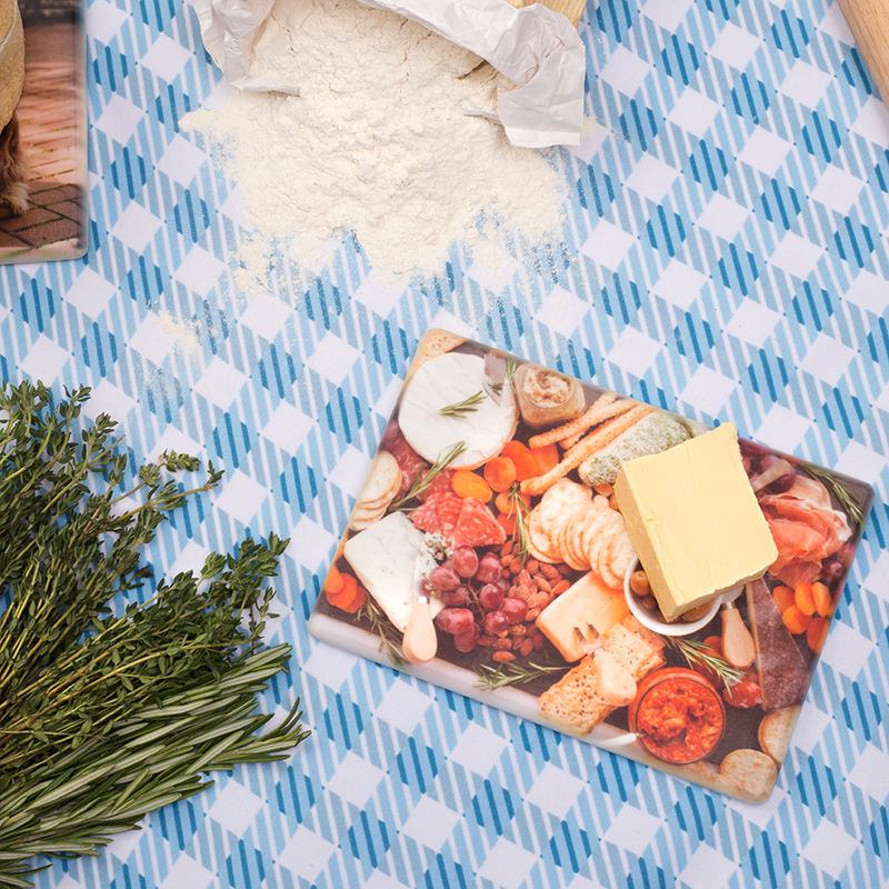 Ons uniek printsysteem zorgt dat we jouw foto's of ontwerpen kunnen printen aan een zijde van de snijplank, waarbij de afbeelding doorloopt om de zijkant. Onze hoogwaardige snijplanken zijn ideaal om je keuken wat persoonlijkheid te geven. Waarom maak je geen hele set voor jezelf, of als speciaal cadeau? Op deze prachtige gepersonaliseerde snijplanken kun je je groenten, vlees, fruit en nog veel meer snijden en hakken. Het zijn ook leuke artistieke planken om je hapjes te presenteren, of als kaasplankje.