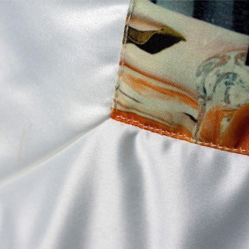 100% natuurlijk katoen satijn weefsel. Glad oppervlak met een matte finish. Reflecteert & absorbeert het licht. Voelt fris aan.