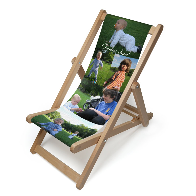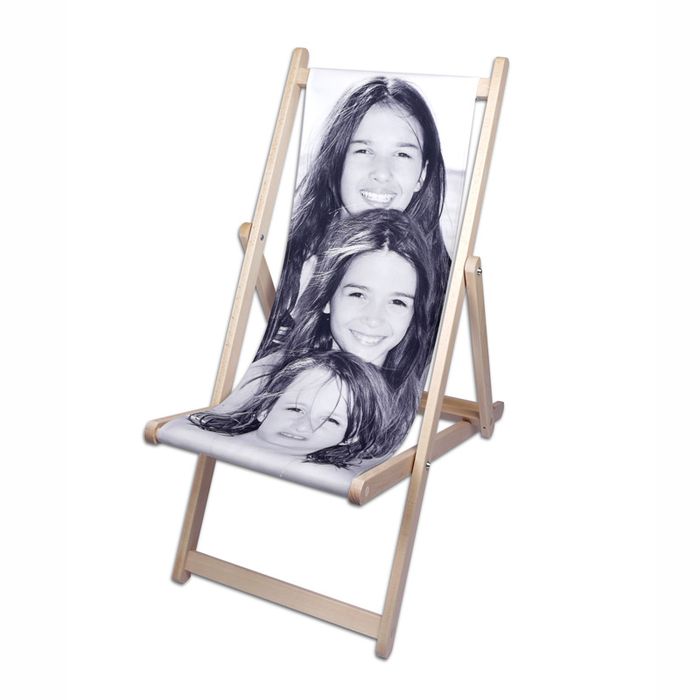 Een gepersonaliseerde stof voor ligstoelen ziet er geweldig uit, bedrukt met een artistieke portretfoto. Ook een fotocollage is een leuk ontwerpidee voor jouw eigen strandstoelzitting. Omdat het een groot canvas betreft, kun jij een heel aantal foto's of ontwerpen afdrukken om een uniek tuinmeubel te maken.