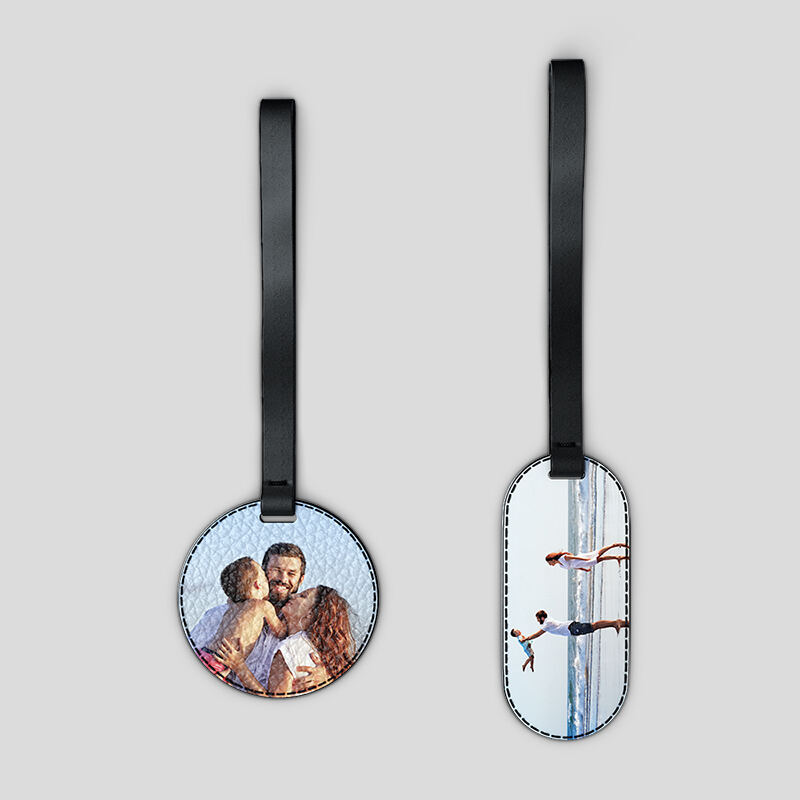 Kies voor de ovale capsule als je een langere naam, slogan of een smal logo wilt tonen. De ronde hanger werkt geweldig voor foto's, monogrammen of icoontjes. Plaats belangrijke details binnen de veilige marge en gebruik contrastrijke kleuren voor een heldere tashanger fotoprint. Met de 3D-preview zie je direct hoe je ontwerp eruitziet voordat je bestelt.