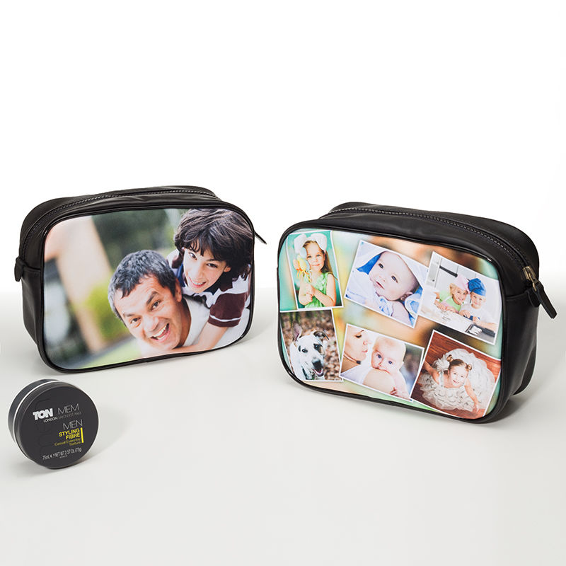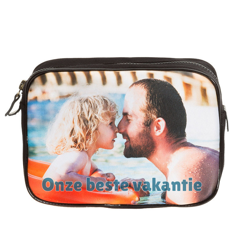 Een gepersonaliseerde heren toilettas kun je eenvoudig online ontwerpen, door gebruik te maken van ons designsysteem. Upload foto's van de kinderen, zijn favoriete auto of een mooie reis die jullie samen hebben gemaakt. Wanneer je niet kunt kiezen, kun je ook meerdere afbeeldingen selecteren en een fotocollage maken.